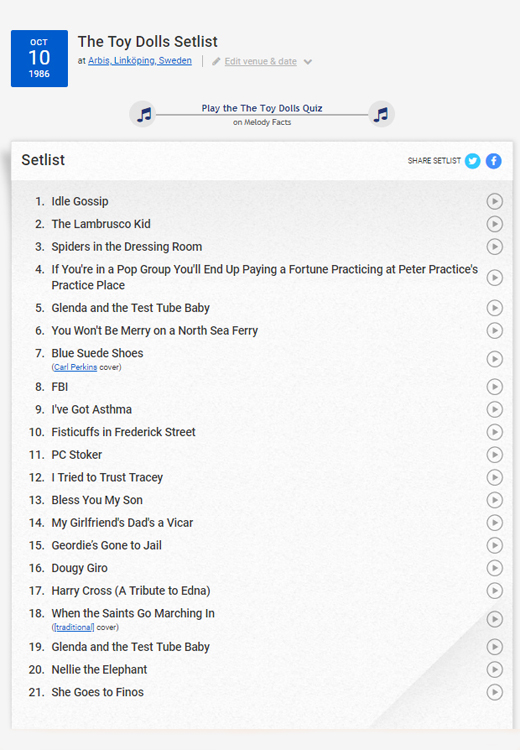Review of gig at Folkets Park, Linköping 14 November 1980