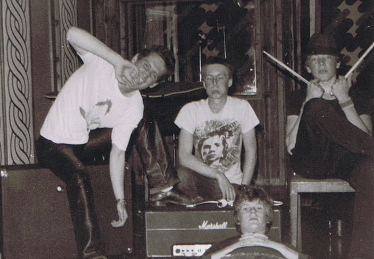 Rehearsal-space in Malmslätt, Linköping January 1980 Persons in picture: Peter, Åke, Hogge and Johan Photographer: Unknown