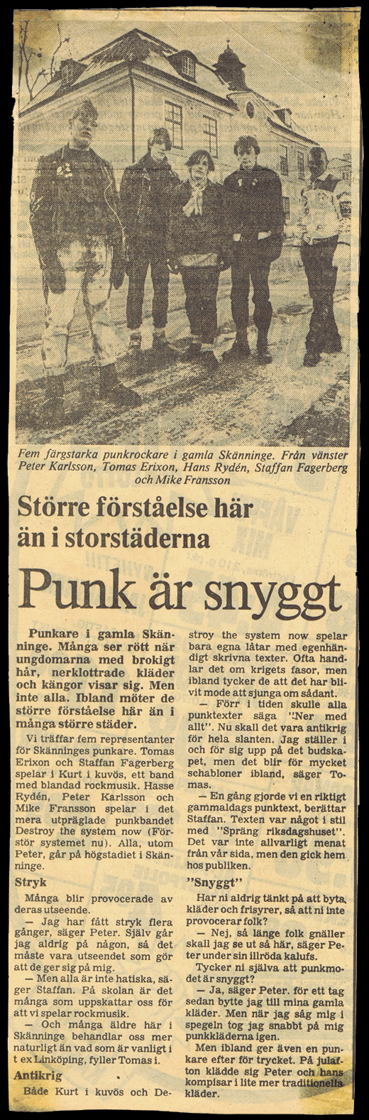 MISC BAND NAME #1 Destroy #2 Destroy TSN (Destroy The System Now) ACTIVE YEARS 1981-1983 FROM Skänninge DISCOGRAPHY