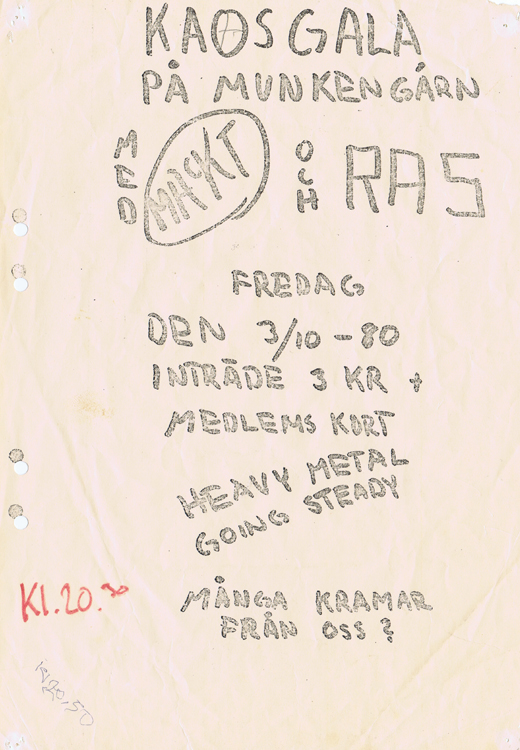 Kvinnebygården, Linköping 19 november 1980 Info: --- Design by: MC5 Fan Club