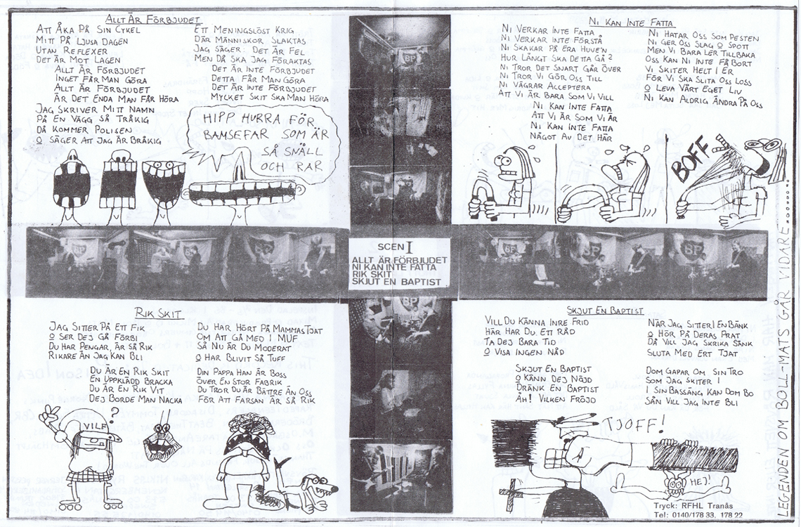 Front 7" Jesus var en tomte 1985 Design: Unknown Back 7" Jesus var en tomte 1985 Design: Bibban Lyrics-sheet side A 7" Jesus var en tomte 1985 Design: Unknown Lyric-sheet side B 7" Jesus var en tomte 1985 Design: Unknown Label side A 7" Jesus var en tomte 1985 Design: Unknown Label side B 7" Jesus var en tomte 1985 Design: Unknown .............................. 7" 1986 Psykiskt drama i 7 akter