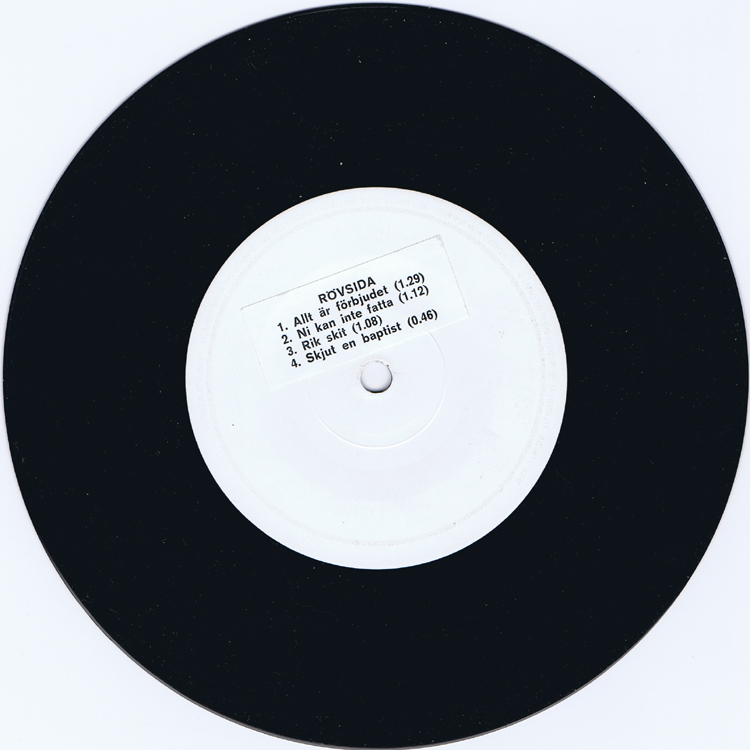 7" Psykiskt drama i 7 akter Recorded at KLOAKENS ALTERNATIVA ANTI-STUDIO Recorded by Micke Blomqvist and Boll-Mats Tracks: 01 Allt är förbjudet 02 Ni kan inte fatta 03 Rik skit 04 Skjut en Baptist 05 Jag hatar mitt jobb 06 Trött Lever 07 Satan är ett troll THANKS! Approved by Rövsvett (Mikael "Löken" Karlsson)