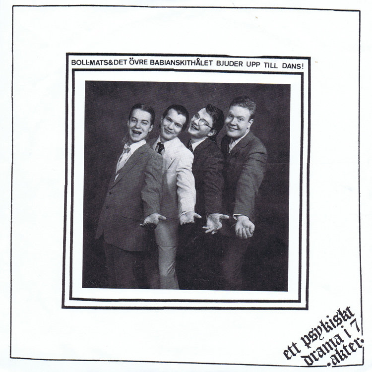 Front 7", Psykiskt drama i 7 akter, 1986 Design: Unknown Back 7", Psykiskt drama i 7 akter, 1986 Design: Bibban Lyrics-sheet side A 7", Psykiskt drama i 7 akter, 1986 Design: Unknown Lyric-sheet side B 7", Psykiskt drama i 7 akter, 1986 Design: Unknown Sticker 7", Psykiskt drama i 7 akter, 1986 Design: Unknown Label side A 7", Psykiskt drama i 7 akter, 1986 Design: Unknown Label side B 7", Psykiskt drama i 7 akter, 1986 Design: Unknown |